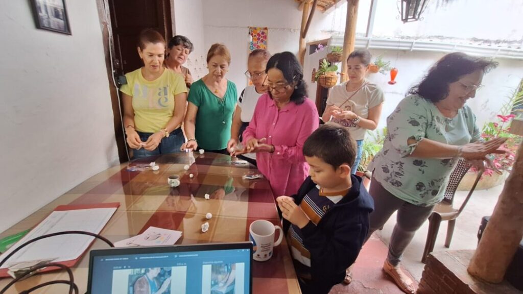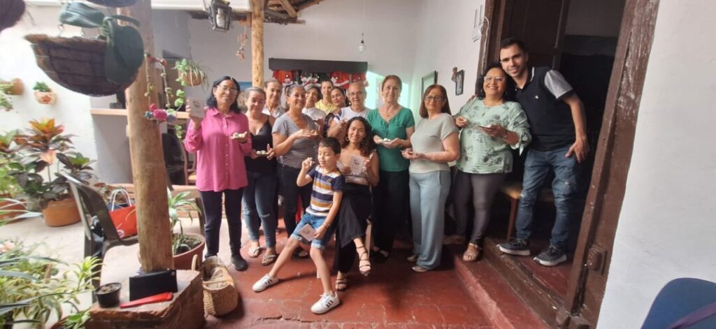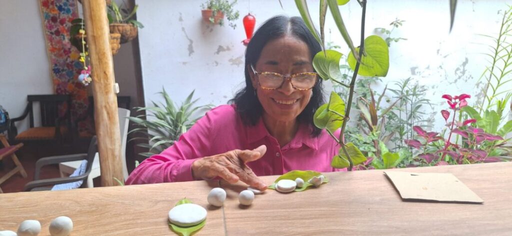 Para Matilde Díaz del grupo de Entretejidos de la Fundación Tierra Encantada, uno de los espacios en los que se ha desarrollado este taller; “fue una experiencia bonita compartir con otras mujeres el quehacer de las arepas”, según ella se divirtió escogiendo una hoja para colocar su creación y disfrutó el sentir y vibrar con la plastilina imaginando que es la masa, haciendo cada paso en miniatura como jugando con los dedos asemejando cada movimiento que conocen de la práctica del arte de moldear un alimento.