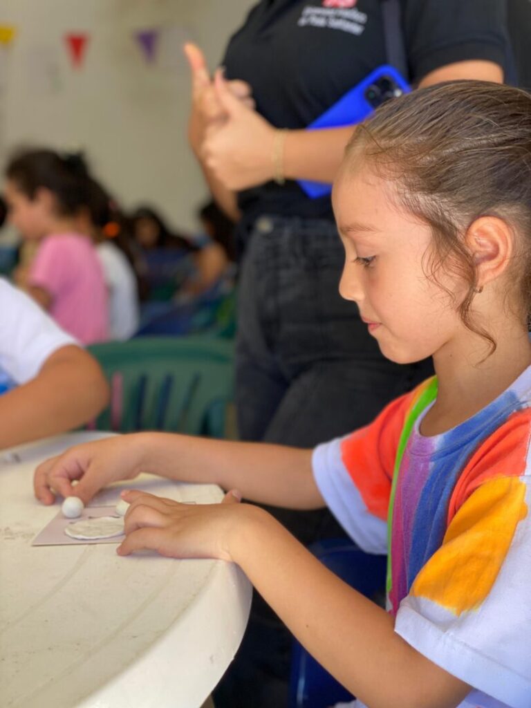 “Es una tradición de nuestra Ocaña que hace parte de nuestros días, es nuestro alimento diario con queso, con huevo, pescado, mejor dicho, pega con todo y es lo que compartimos con nuestras familias por eso me encantó este taller y cada uno de los pasos para hacer las arepas” Yarith A Carrascal, niña de 13 años del barrio Asovigiron.